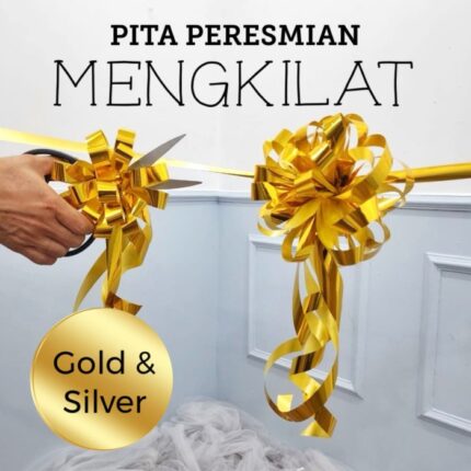 Dqueen Florist – Pita Peresmian mengkilat Pompom Premium Gold Silver