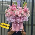 Dqueen Florist – Bunga Box Fresh Flowers Lily & Rose Model Anesui