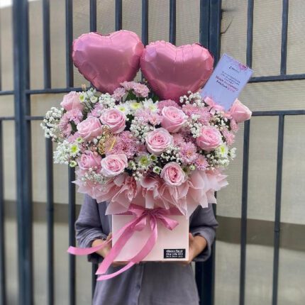 Bunga Box Fresh Rose Balon Foil
