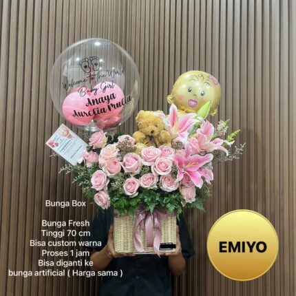 Dqueen Florist – Bunga Box New Born Baloom Balon Baby Hampers